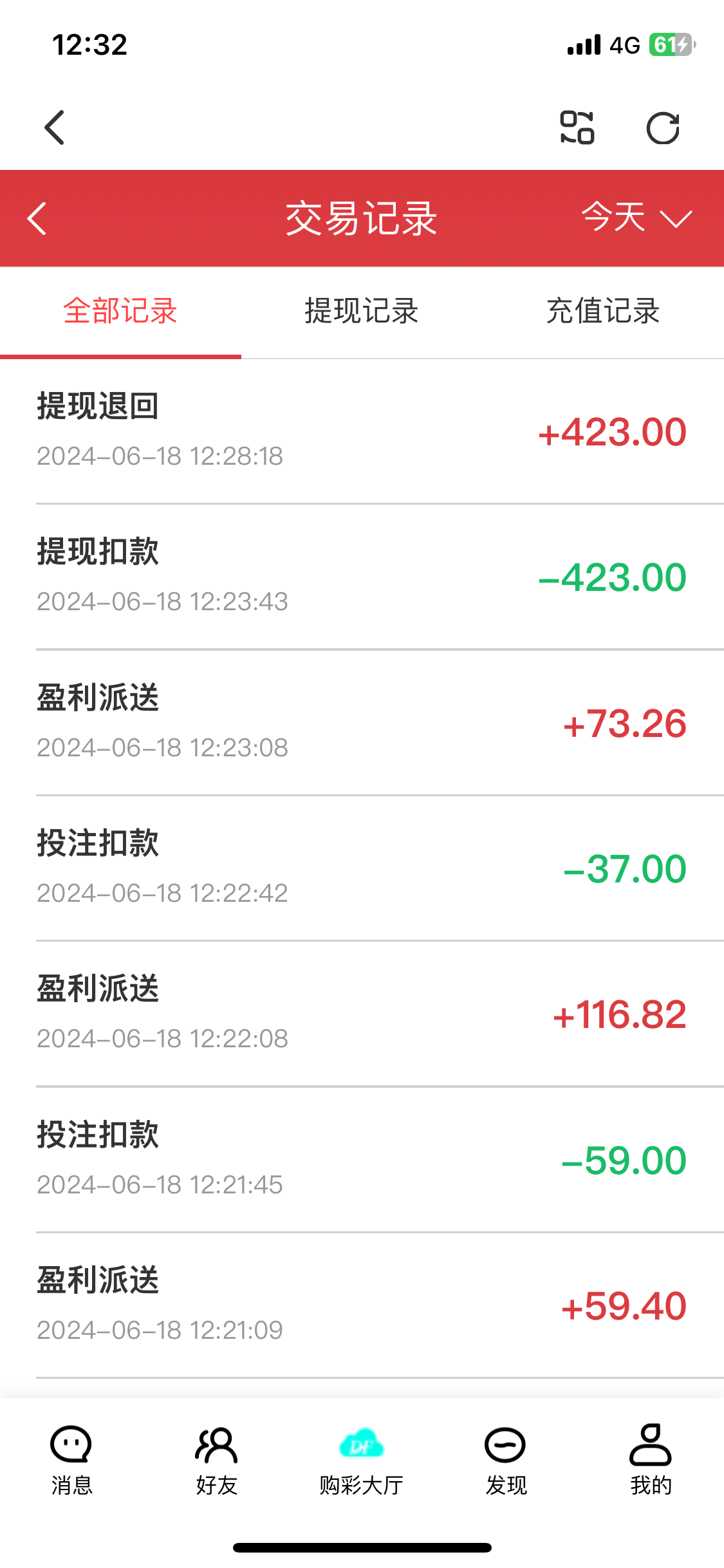 6天送500那个,前面4天不需要充值,第四天打出来了,不给买单双对压不给买数字,然后一直没有违规下注,好不容易打个400要充300,闹呢!还风控,就是玩不起,天天忽悠充值