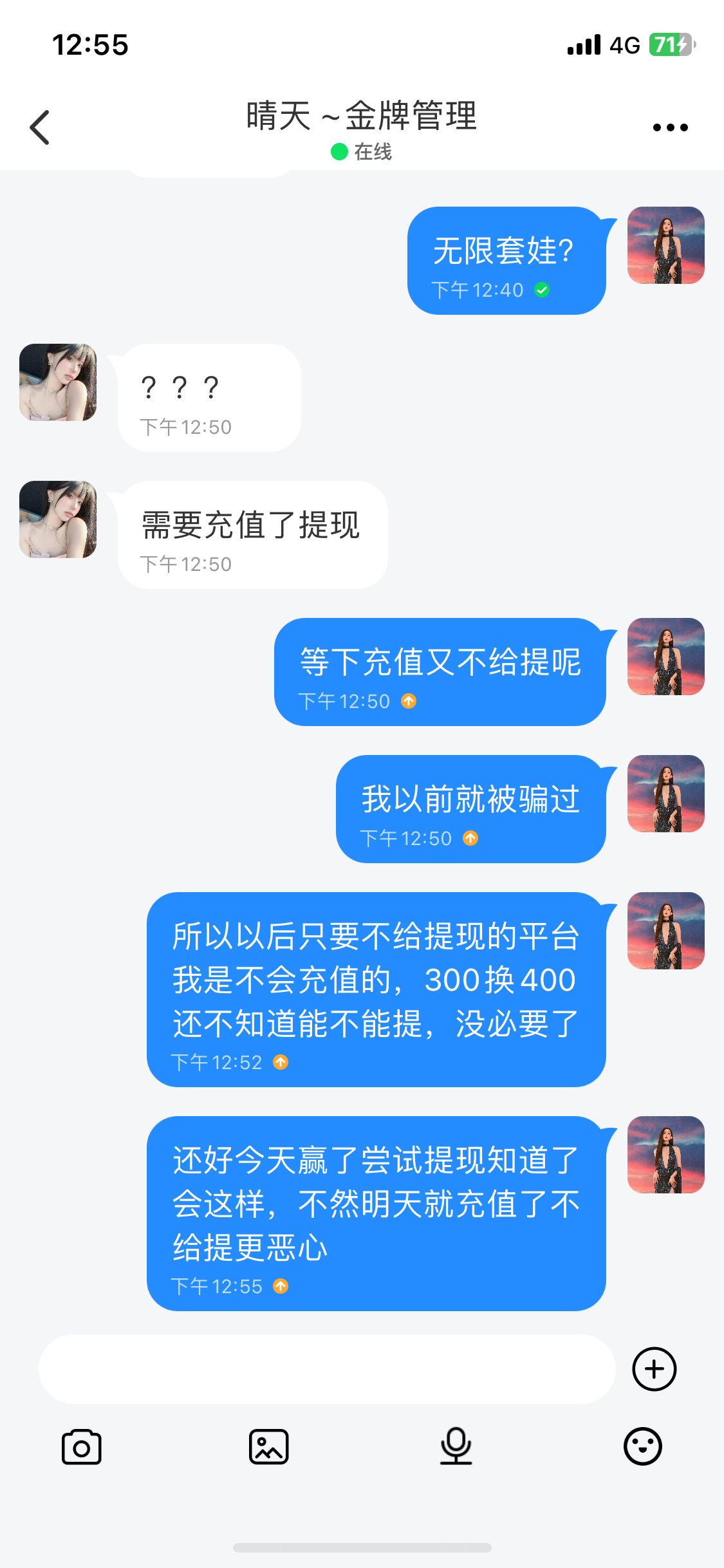 兄弟们避雷,及时止损,本想今天打不出来明天尝试充100,好家伙漏出鸡脚了