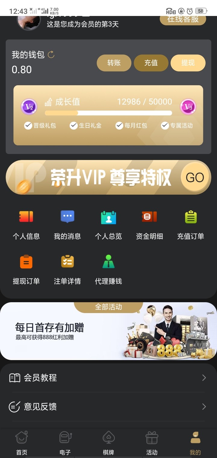 充值累计500的申请58,我没打出来,不过充了50又打没了,16反水上2k,前几天云顶国际100上1400,估计赢多了,垃圾台,全扣了