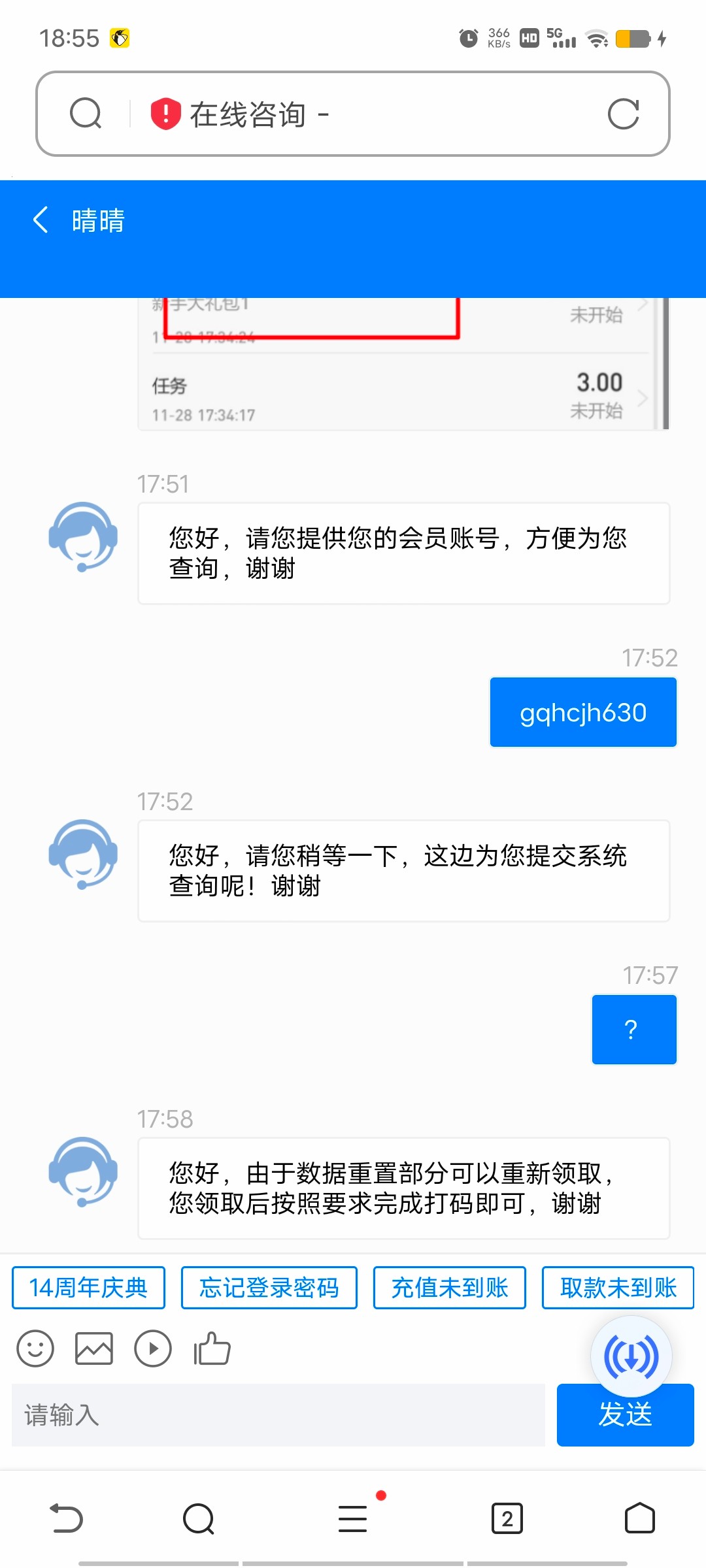 充了7500打3w水要个口没问题吧 他告诉我我没充值