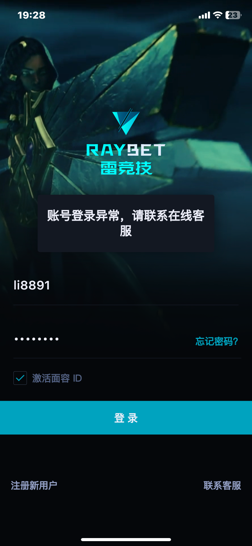 打50账号异常了,50下了几注也不知道结果现在就异常了提供手持身份证正反面,都没能解开,问注册渠道
