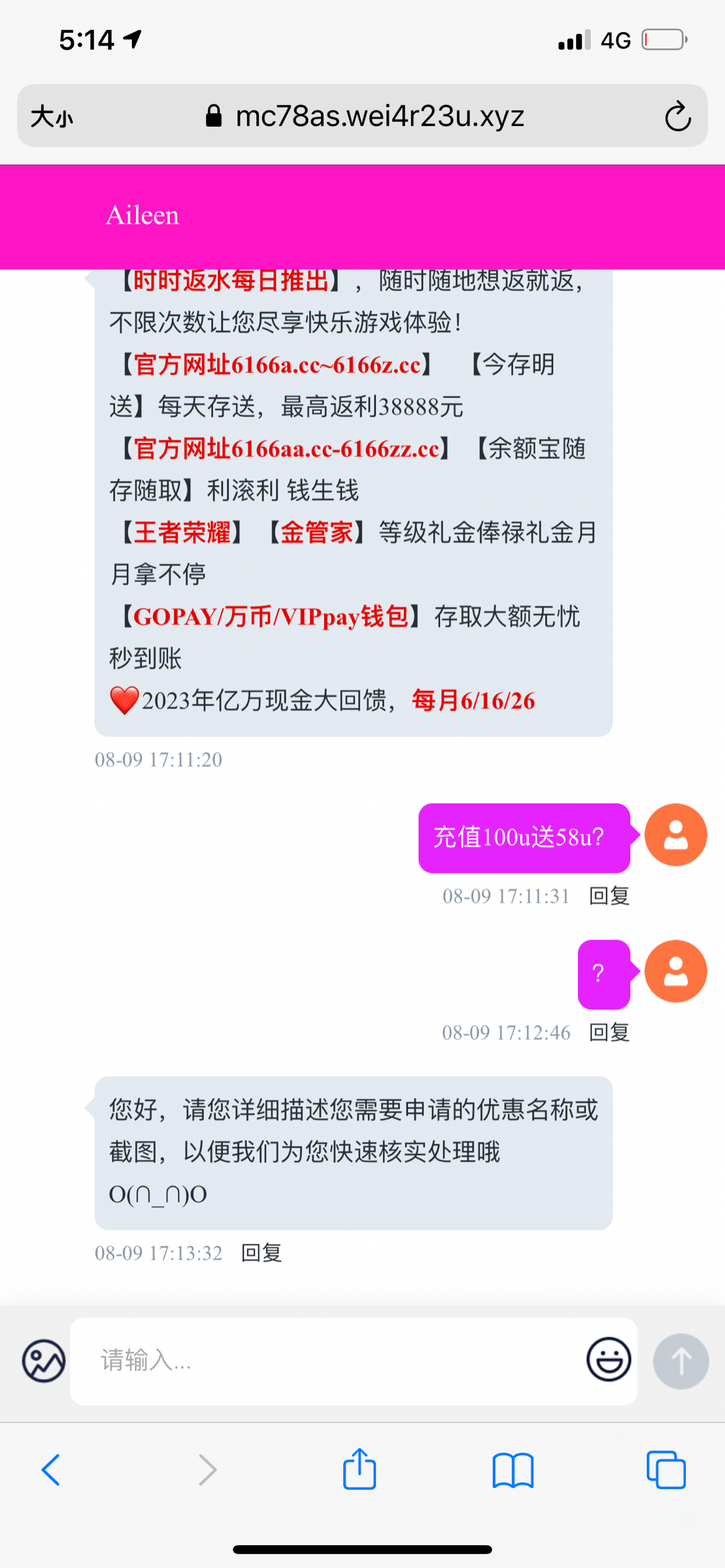以下三个平台用USDT钱包充值100U以上能申请58U,《记得充值好后在找客服申请,100%能送》,别一注册好就上去问客服,这样客服以为你是专业撸白菜的
