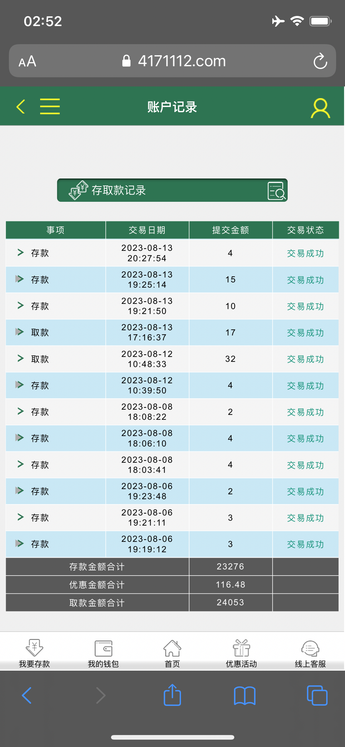 30本金玩电子上到四百提银行卡给我拒绝提现 想着不给提就算了 然后去梭哈Ag 玩到一千块 提到钱能钱包 到账了 之后就一直充提 玩Ag一直陆陆续续赢 然后提钱能钱包 又冲又提 最高上到2.1w 而且2.1w都全部到账钱能钱包了 反水撸了一千多 加上钱能钱包存取款那个活动 存取款彩金撸了一千多 总是感觉还能赢。上头两个小时全部挂完 一下清醒了 人心不足蛇吞象 狗庄不怕你赢 钱 就怕你不玩 输完了 睡得着了