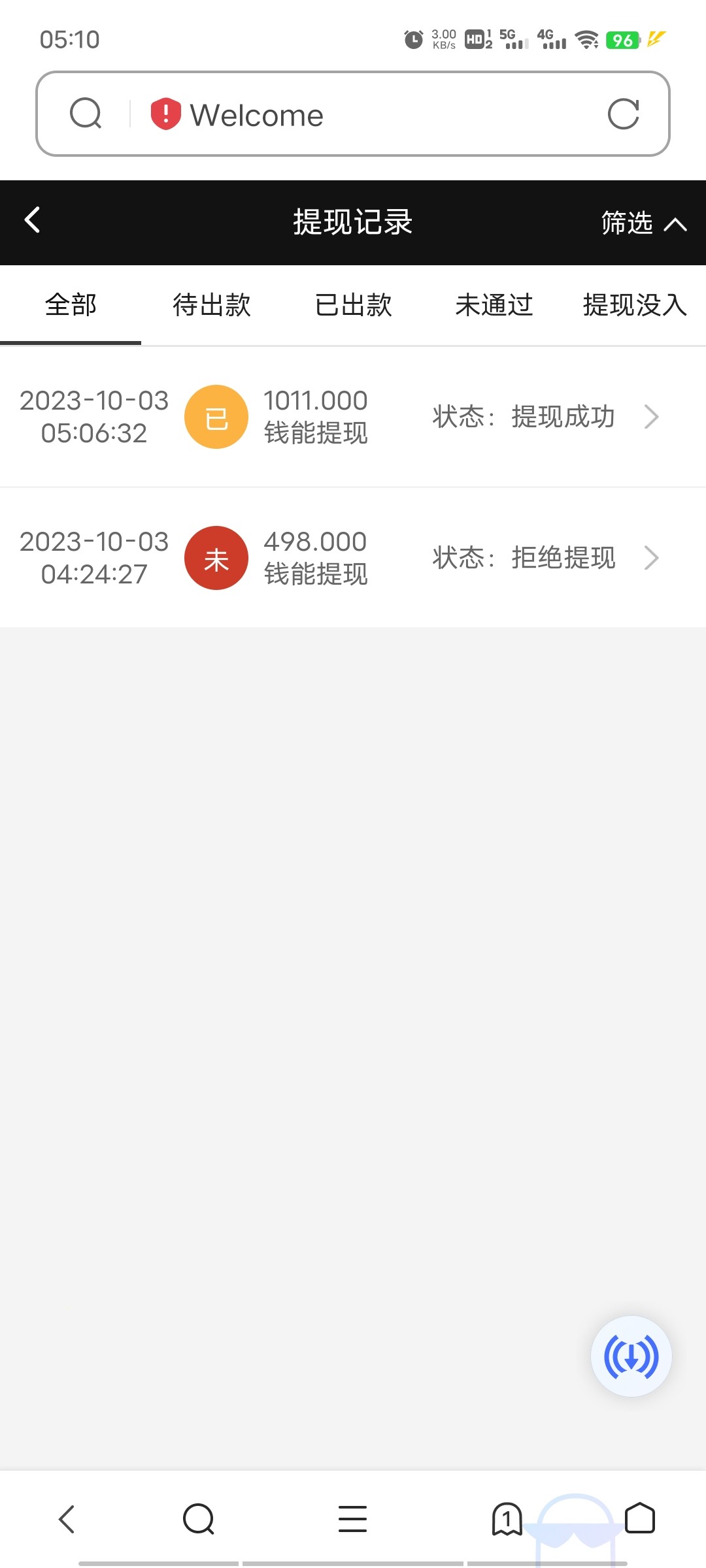 然后手持提供了,退回的498  买了150的夜醉佳人,干到1011  提现钱能秒到