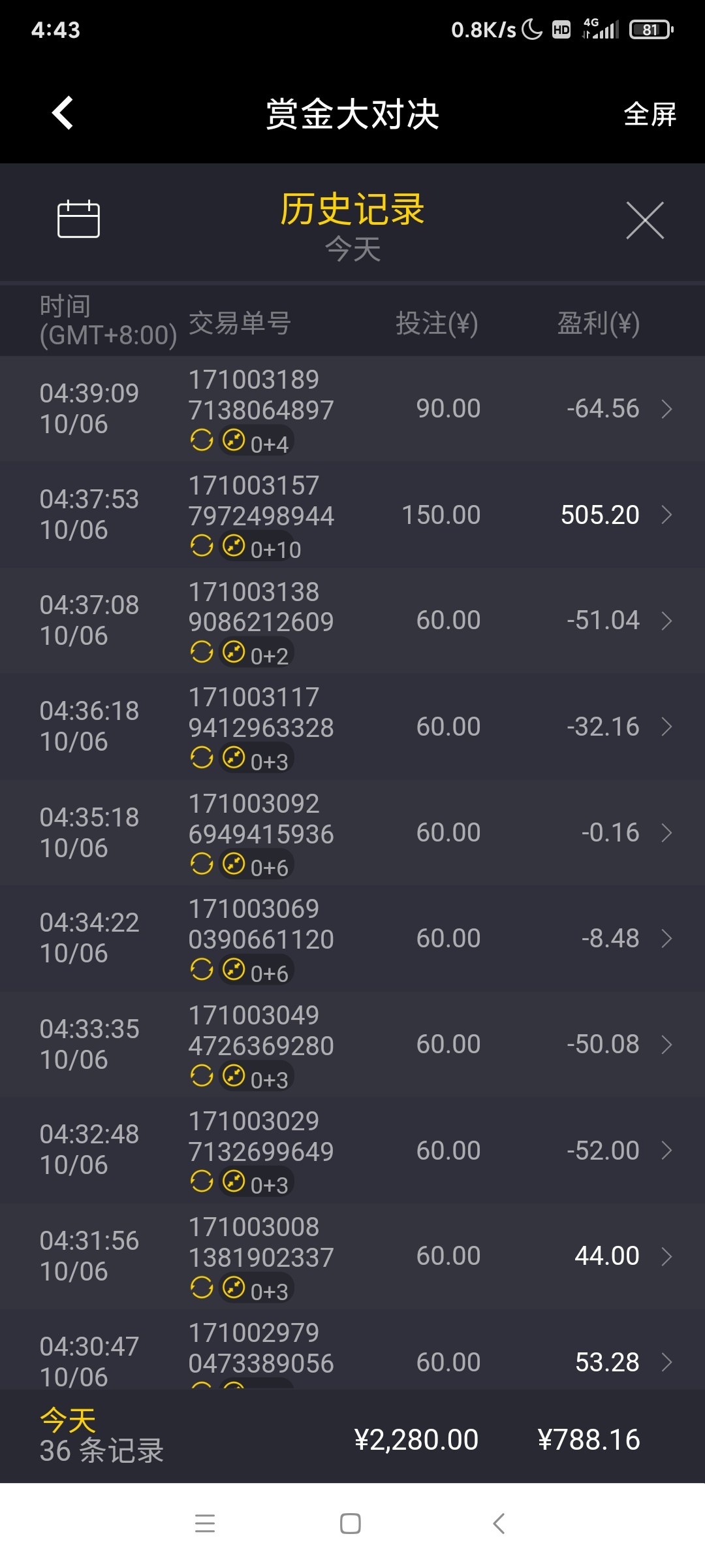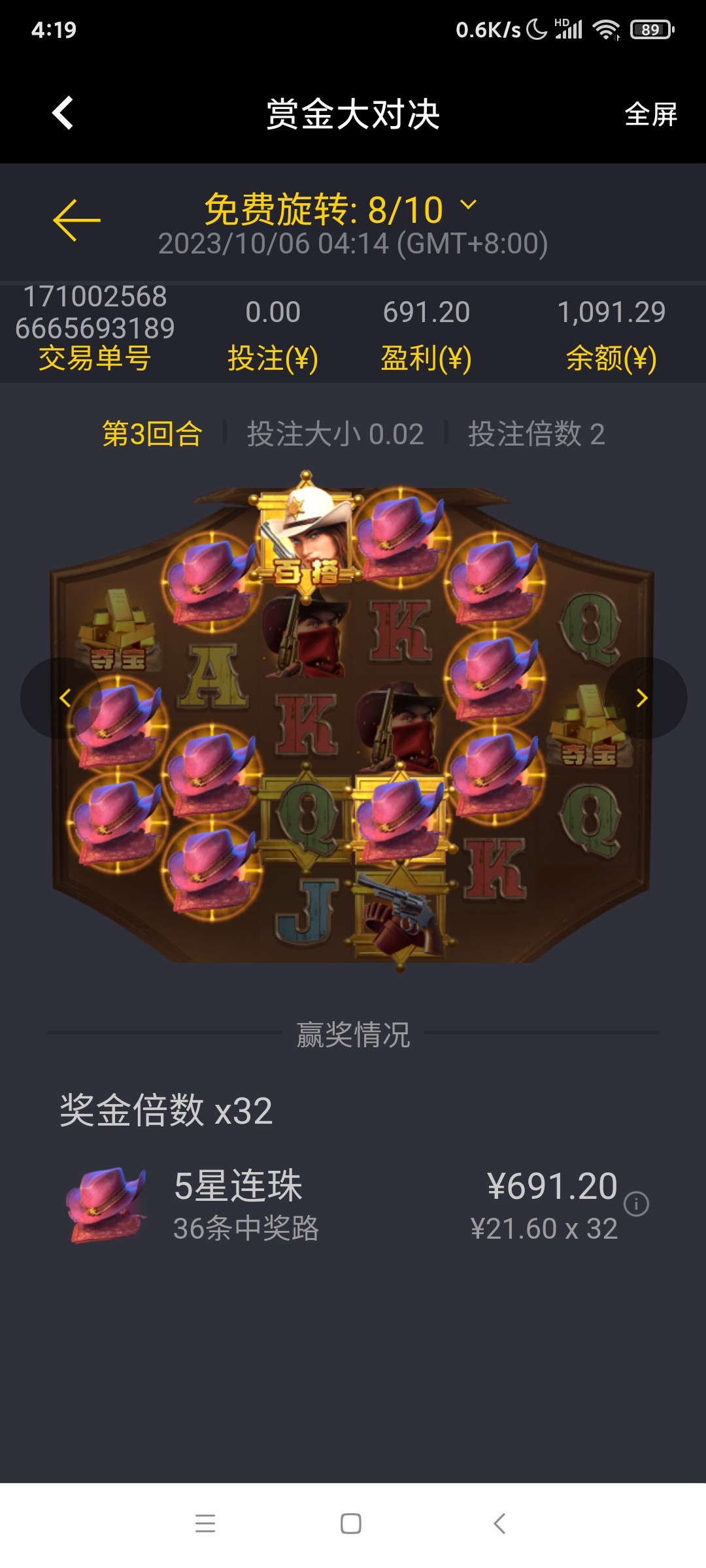 太可惜了,赏金大对决0.8毛在32倍就炸了。128或者256才连就好了