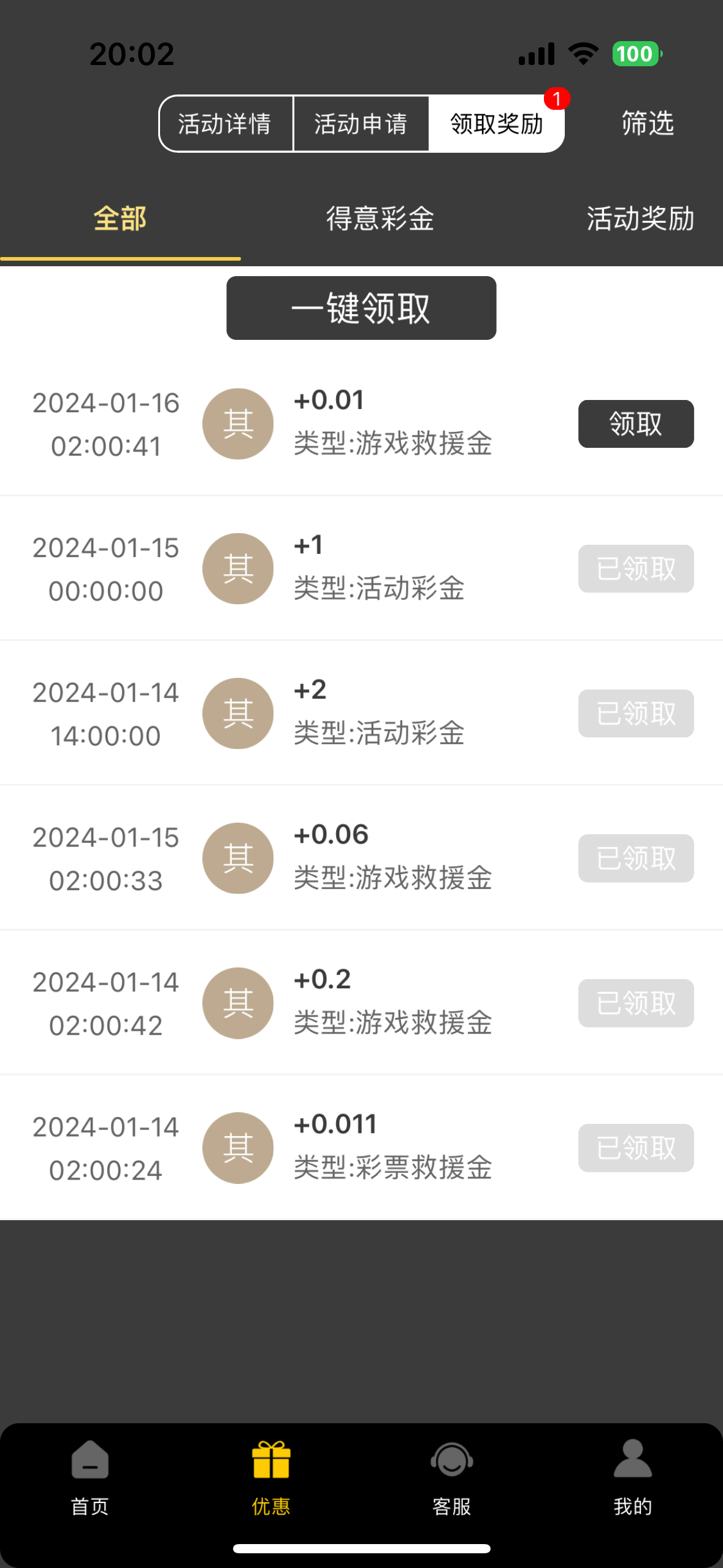 谢谢你提醒我领取0.01