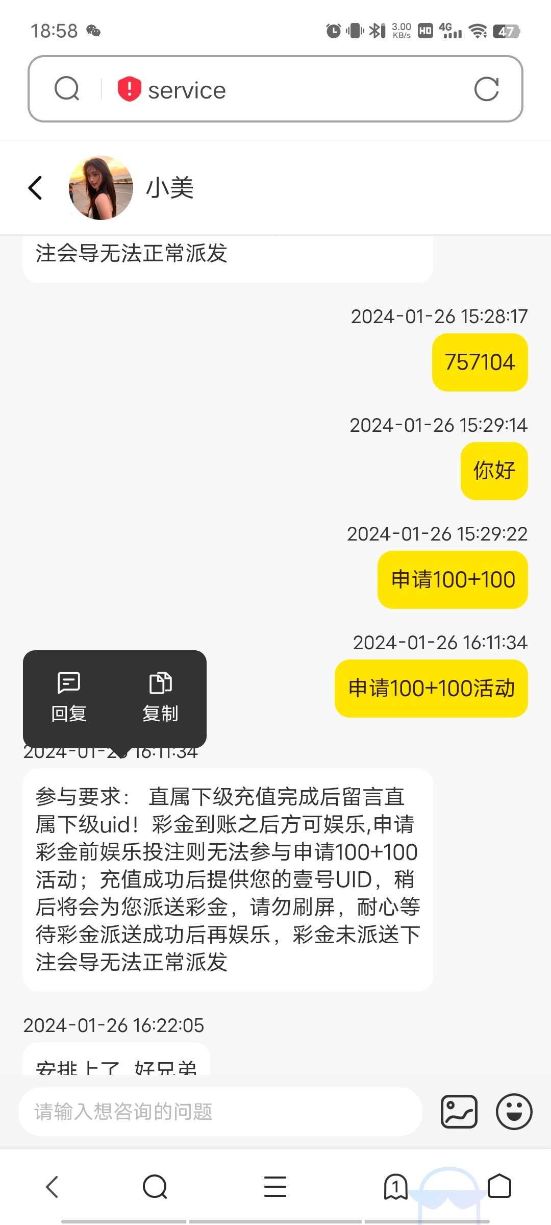 路人,萌萌我知道错了,存了200输完了 然后送100没人回复就没管,刚才突然发现到了,然后就100博到1200 流水也没打够但是竟然成功了,给力 200上1200可以交房租了