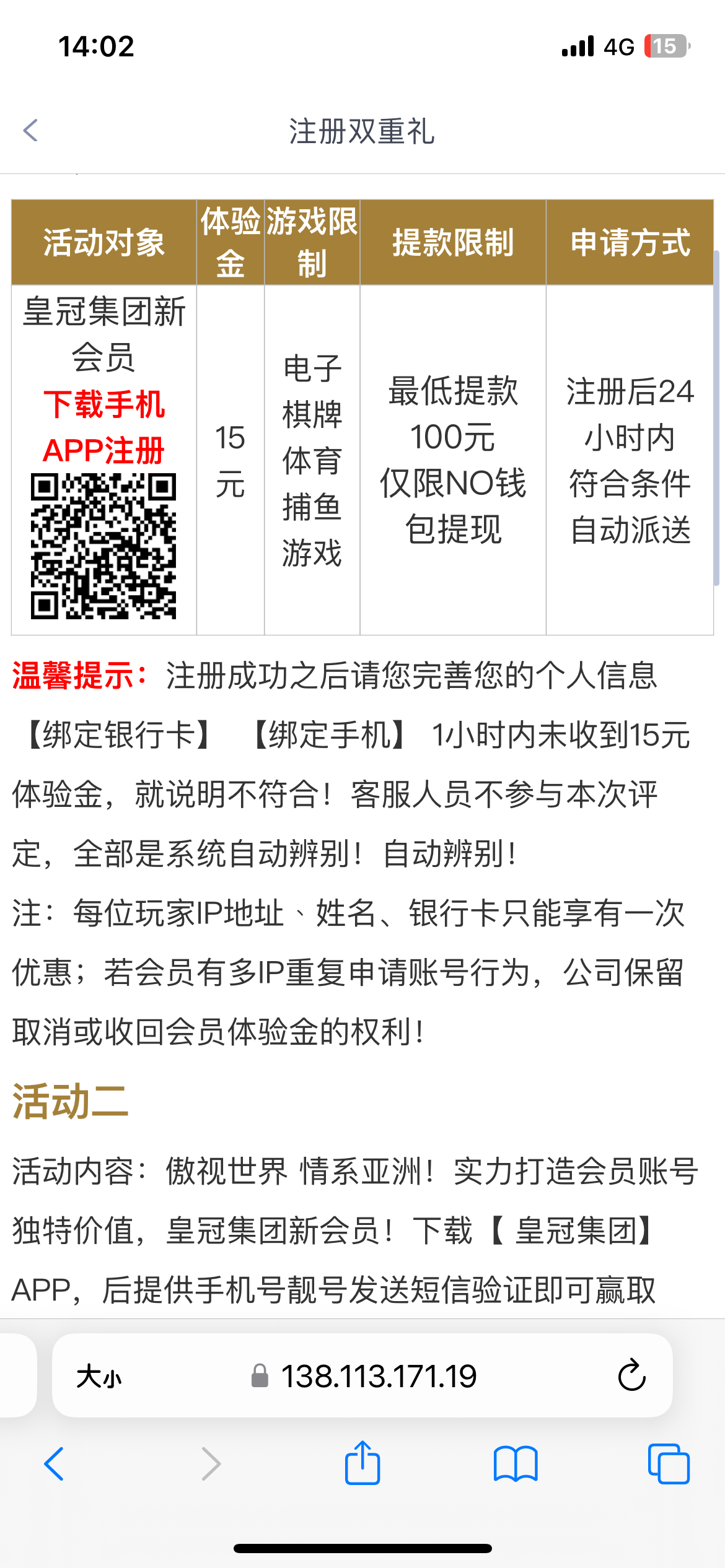 注册送15
