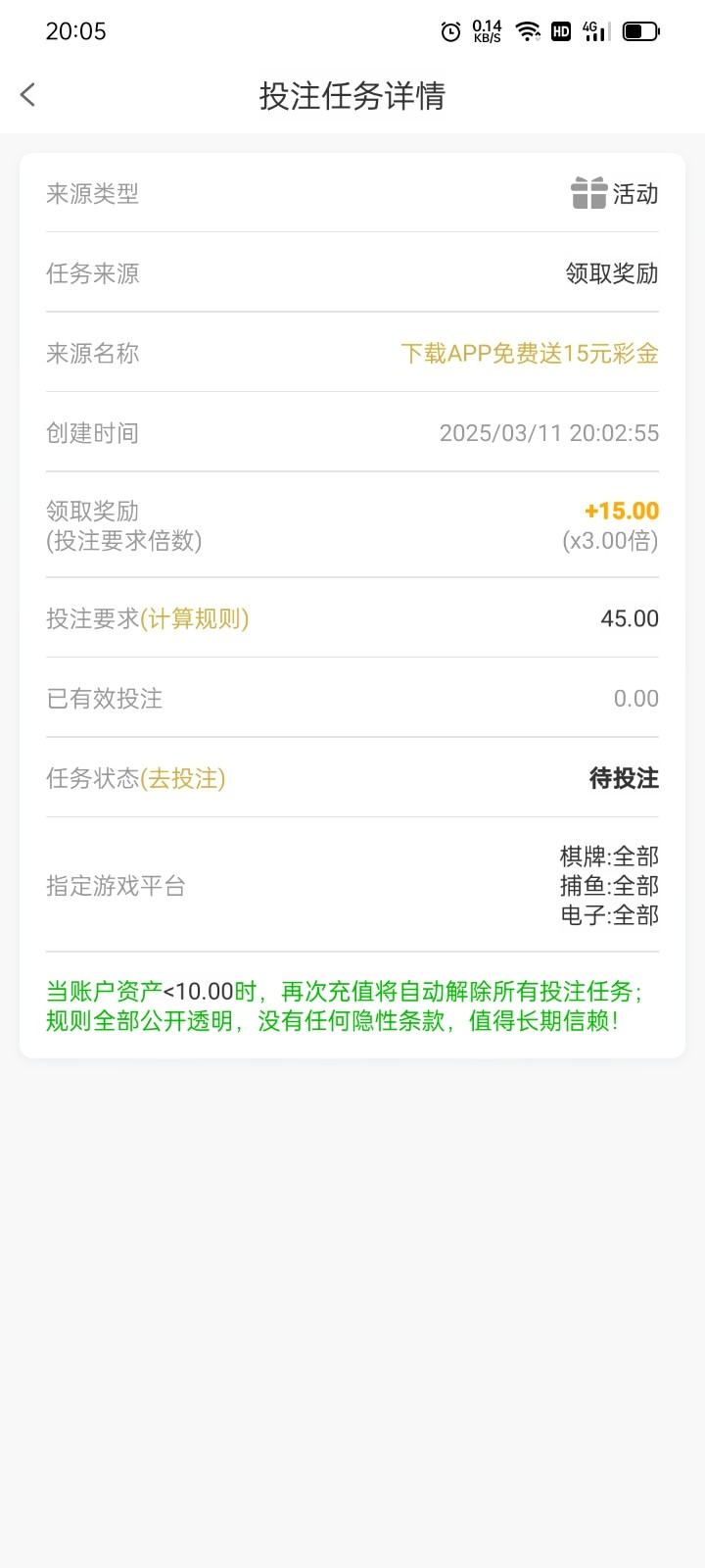 幸运会员派送15元彩金。