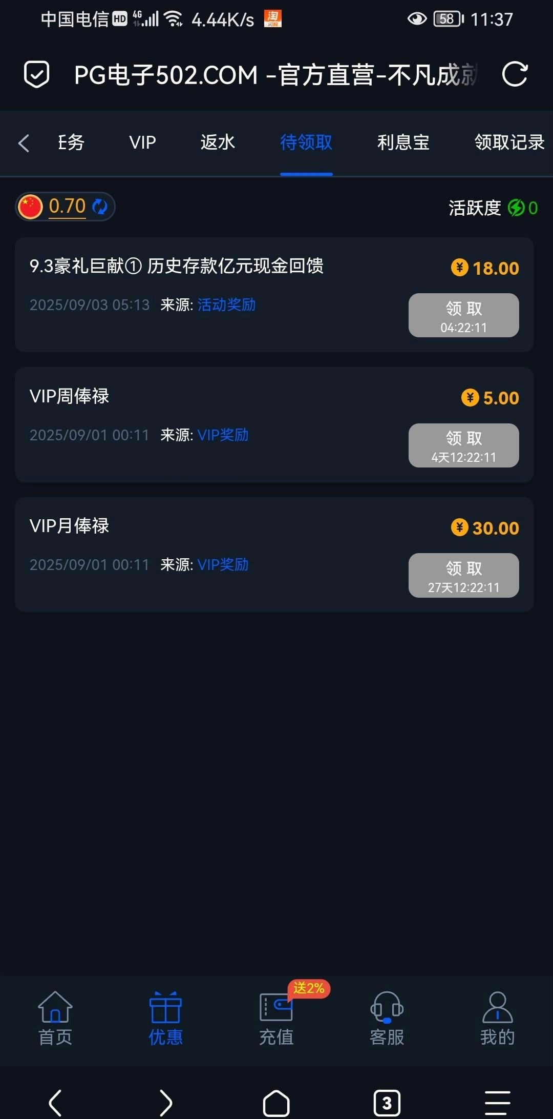 充值过的可以领,网址502.com