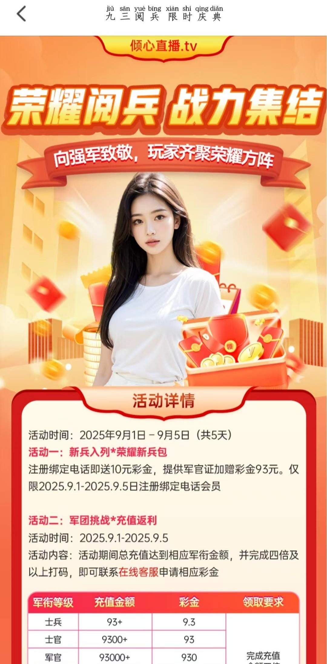 【倾心直播】注册彩金