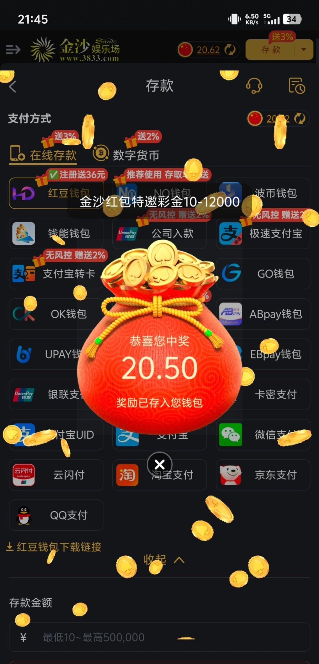 链接3833.com 有号的登陆自动弹窗 100就可以提福袋复活 之前领国一次今天油弹窗弹了一次 祝老哥们好运