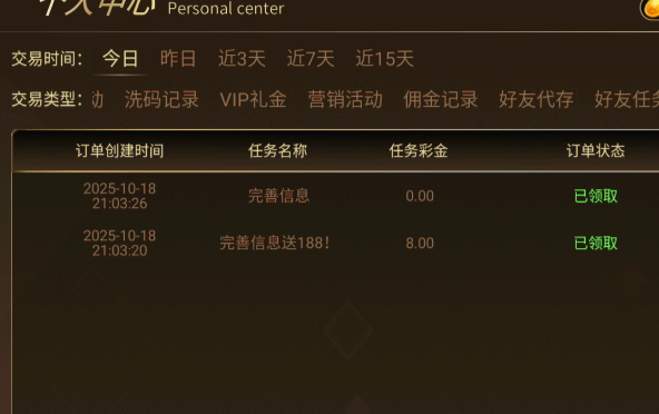 任务中心完善信息领取8