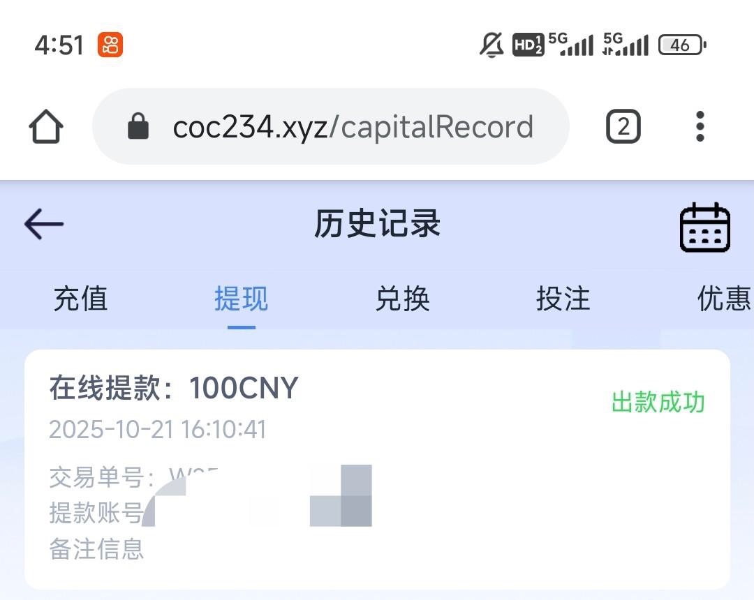 地址coc22.com 先随便注册个账号,联系客服如果是特邀会让你去绑定手机 成功出款100