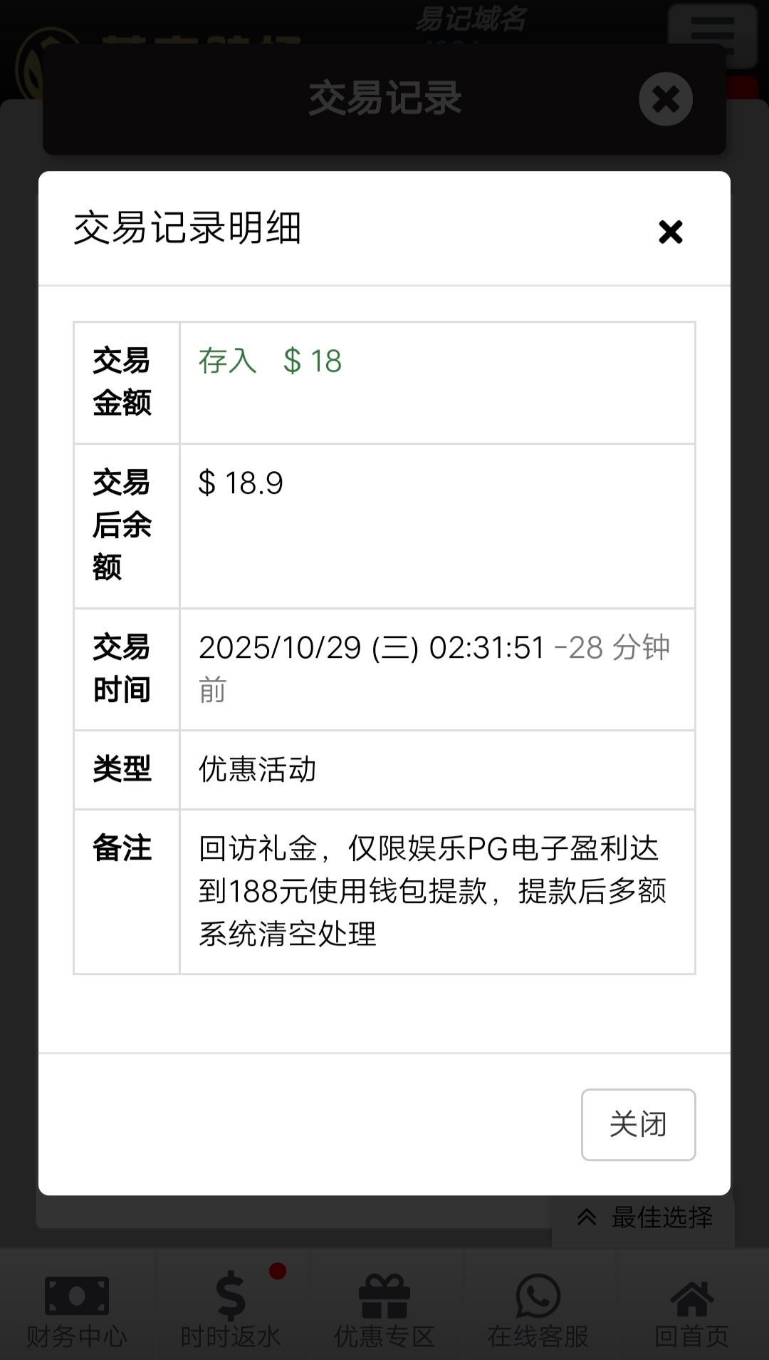 充值过小额,没接到电话,登录就有