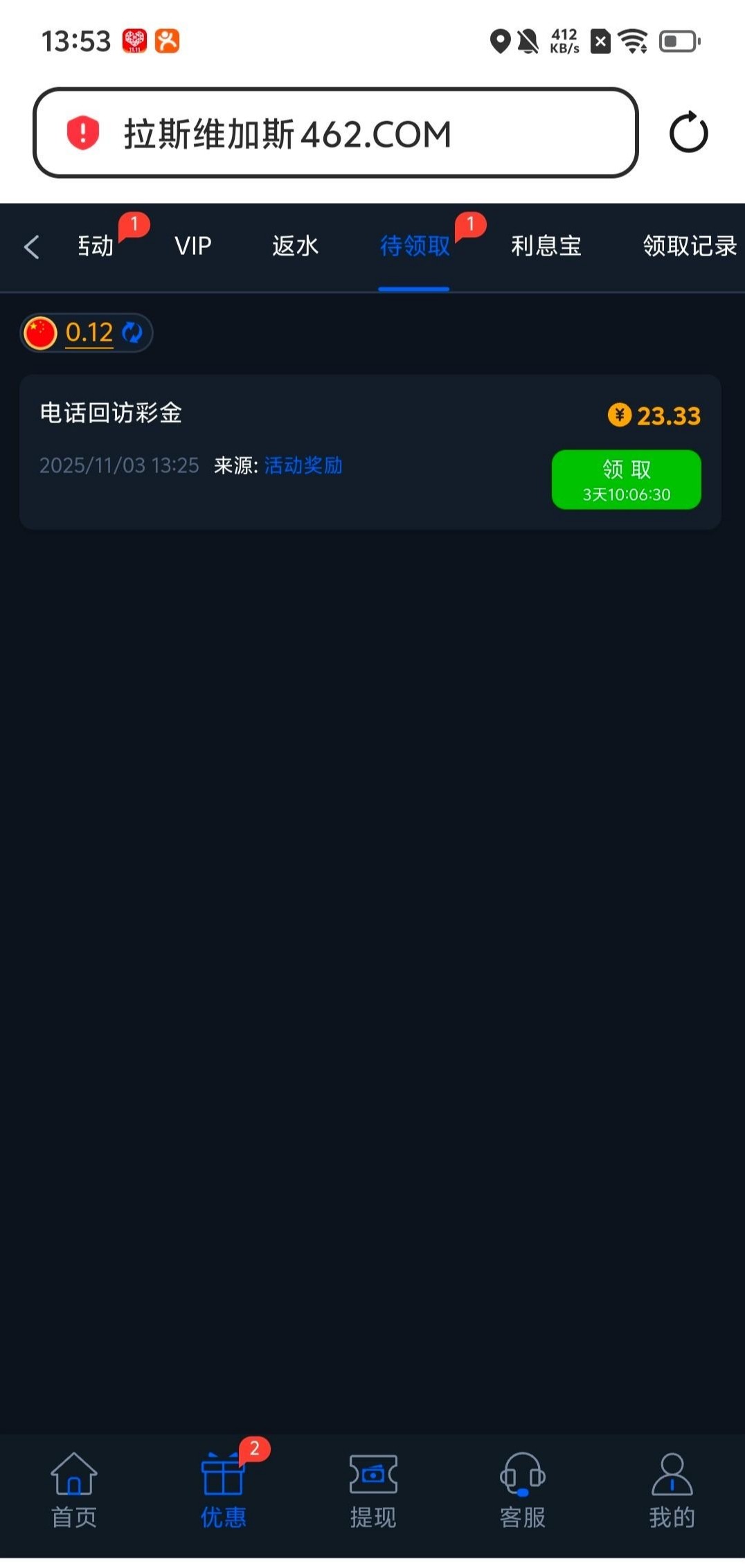 【拉斯维加斯462】——回访彩金