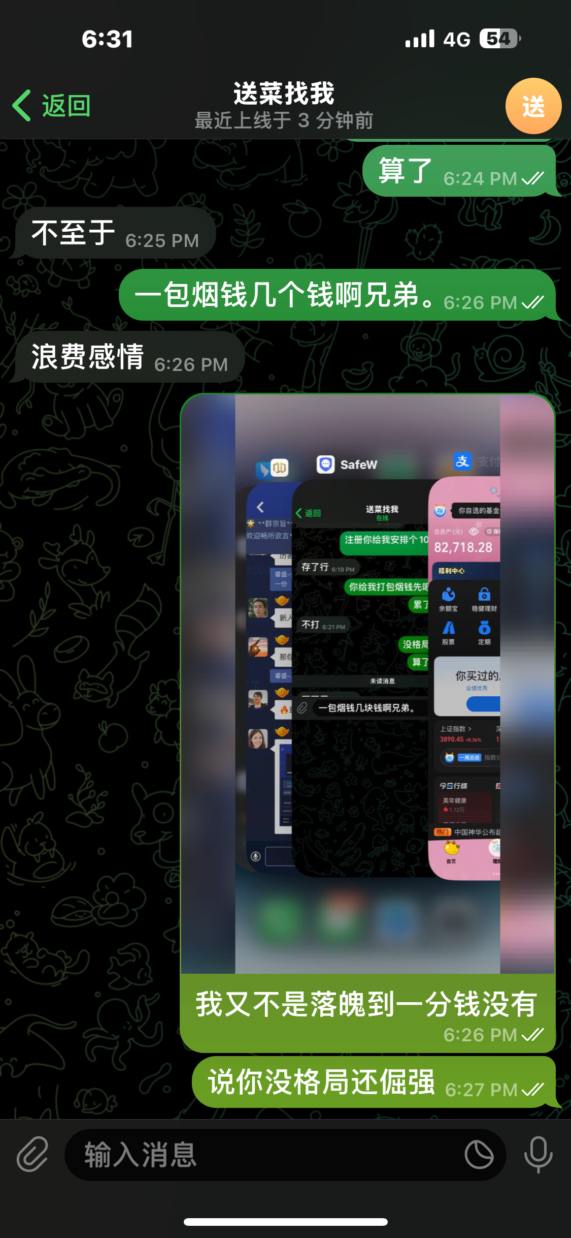 狗闻着味就来了。我还以为是谁呢。原来是傻逼卡分仔