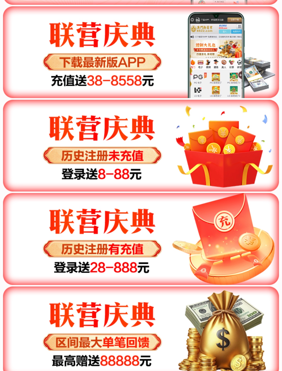 老用户充值过的明天中午12点送28-888 没充值过的送8-88