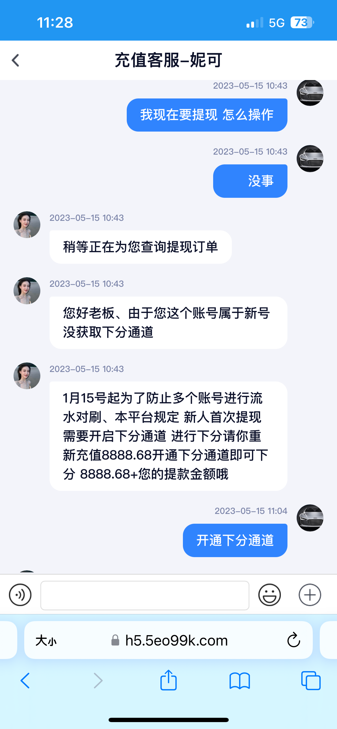 卧槽,新台子就充这么大,应该是黑了。再让你送给他8888,充个几百还行又要8888,你们玩几万块的为啥不去老台子,偏去不知名的小野鸡