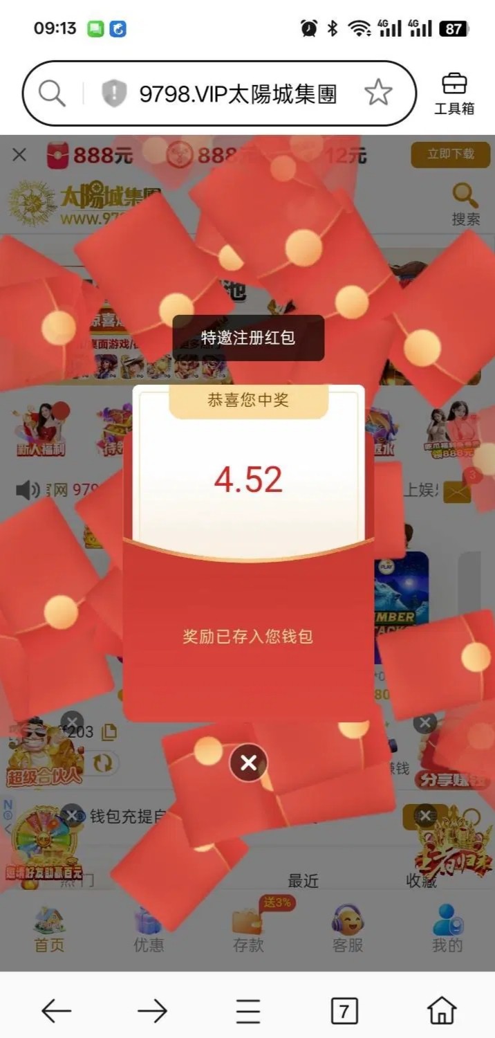 【太阳城9798-特邀注册随机红包】