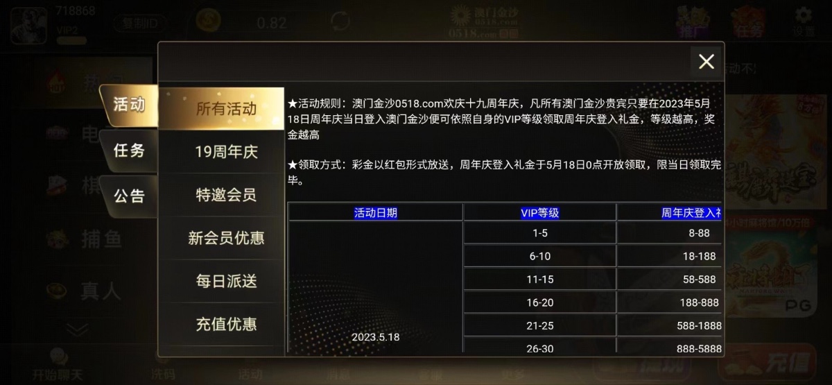 老用户有号的上号自动弹出红包根据下方vip回馈