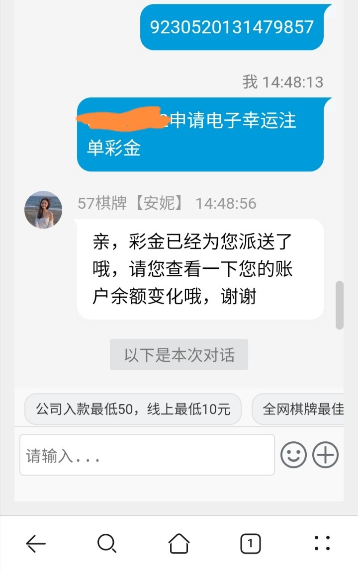 哈哈哈!昨晚找客服申请了电子幸运注单彩金,下午又找客服碰瓷申请,查了半个小时秒到!哈哈哈