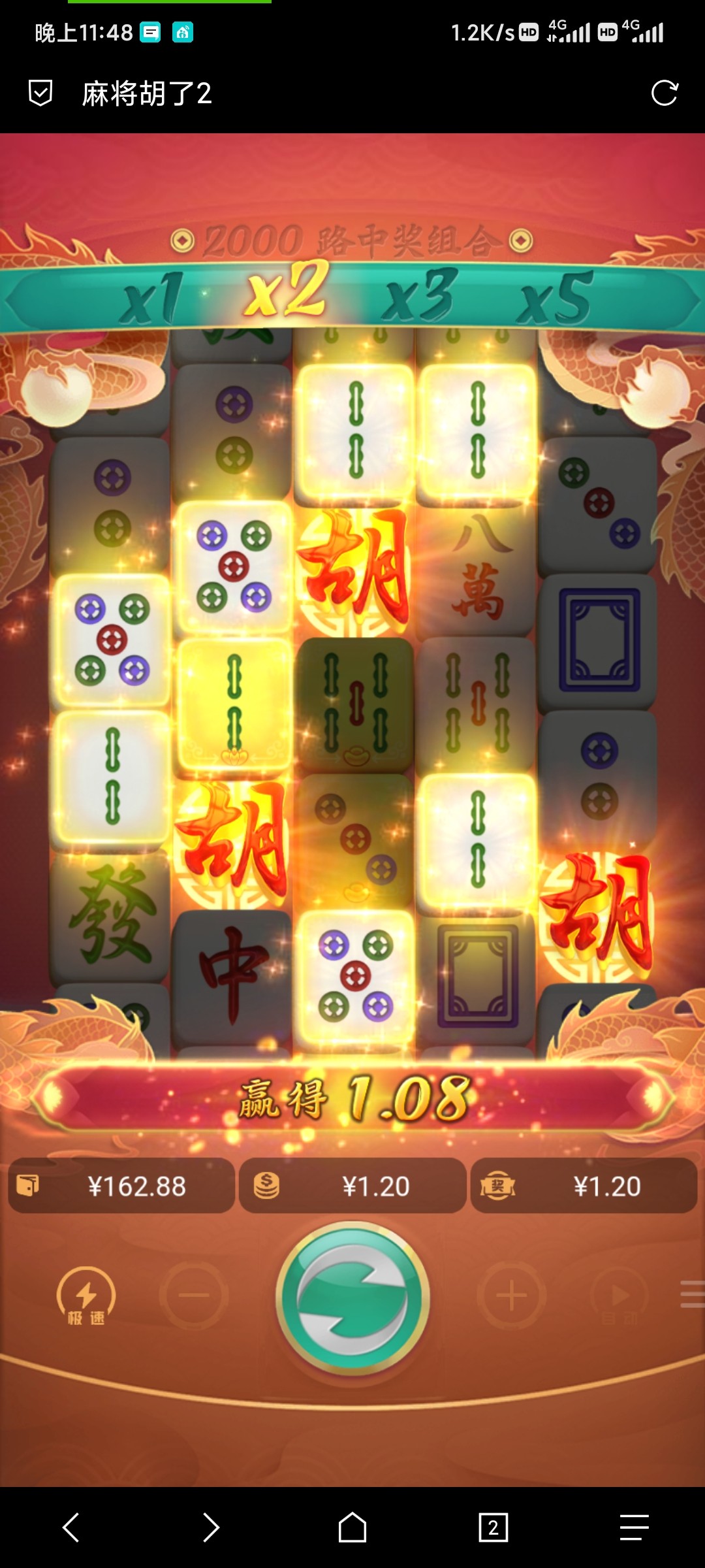 今天麻一500,2块一拉没要到10分钟。一次20倍都没见过。中间胡了两次,一次9块。一次6块,可以告别了,完全的搞心态