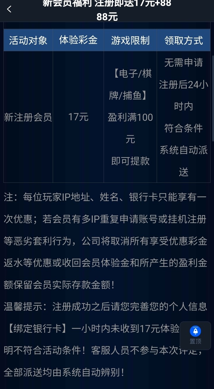 注册过没送的可以重新注册一个,换模板了我重新注册也送了,教大家一个好碰到的方法,先下载在注册然后完善信息后联系客服要,和他说注册彩金怎么还没到一系列反正自己发挥,我是多ip也送了,赶快去撸