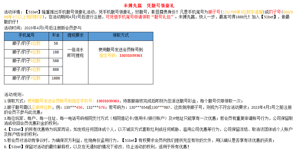 本站声明 1、本帖标题:这个靓号彩金58打到400提现黑不黑
