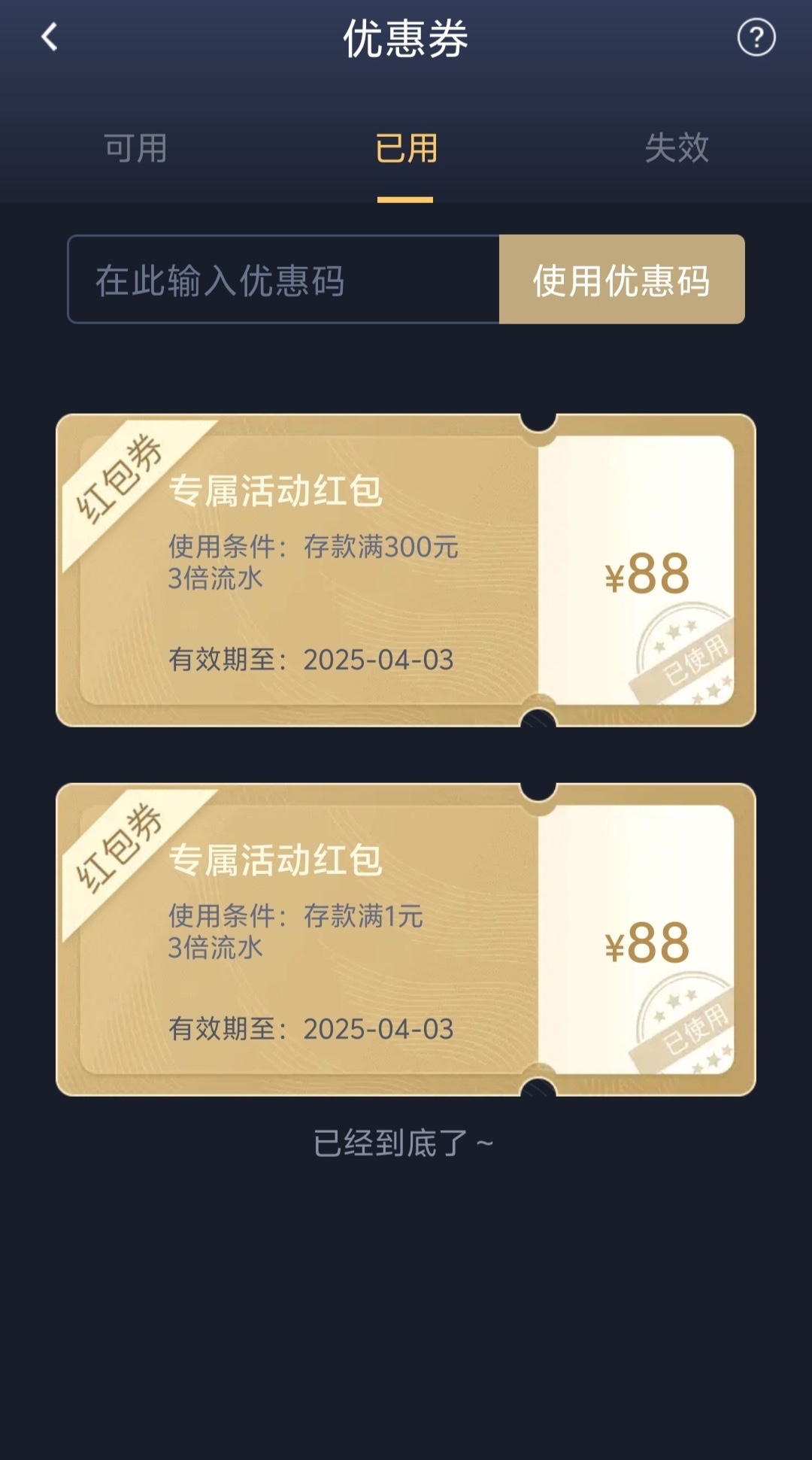 老用户登录看看有没有下方的优惠券