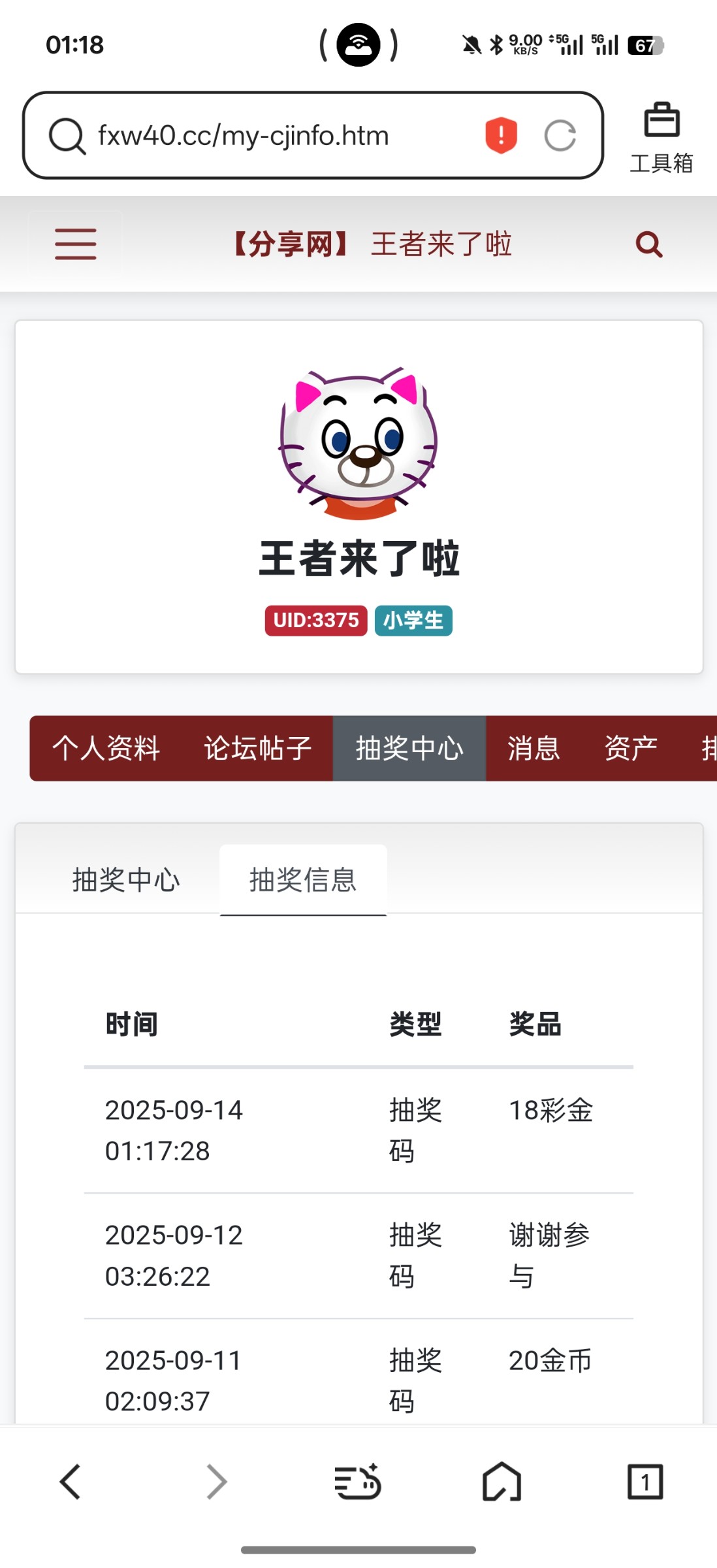 抽奖中了18彩金送到非凡账号 pm02468